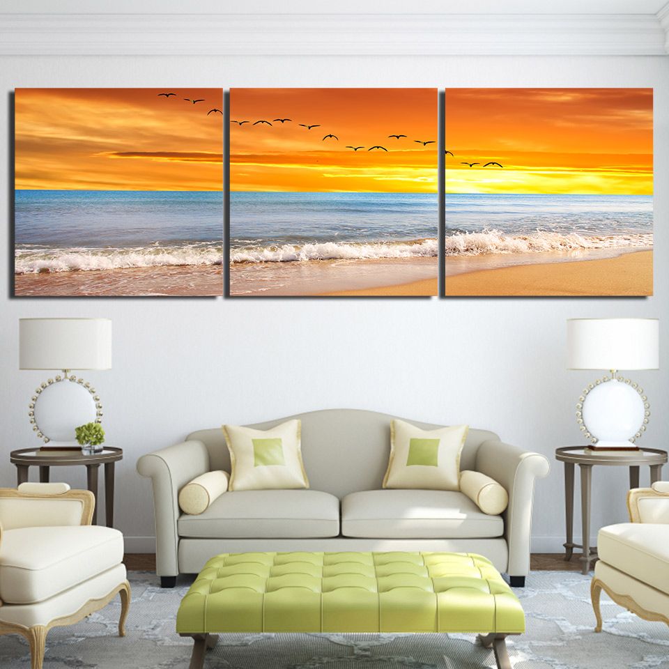 2021 Sunset Beach Waves Canvas Paintings Home Decor Wall Art Posters HD Prints Pictures Painting From Solutionwinni, $24.04 | DHgate.Com